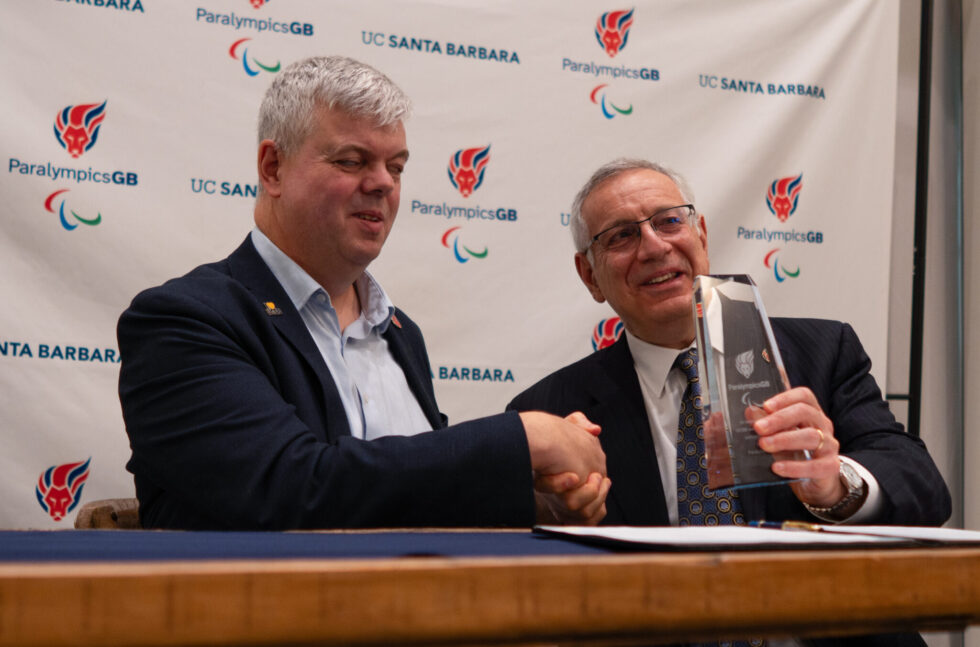 Representatives of the British Paralympic Association and UC Santa Barbara Chancellor Dennis Assanis officially signed a partnership agreement at a Nov. 21 conference. The University will host the Bri...