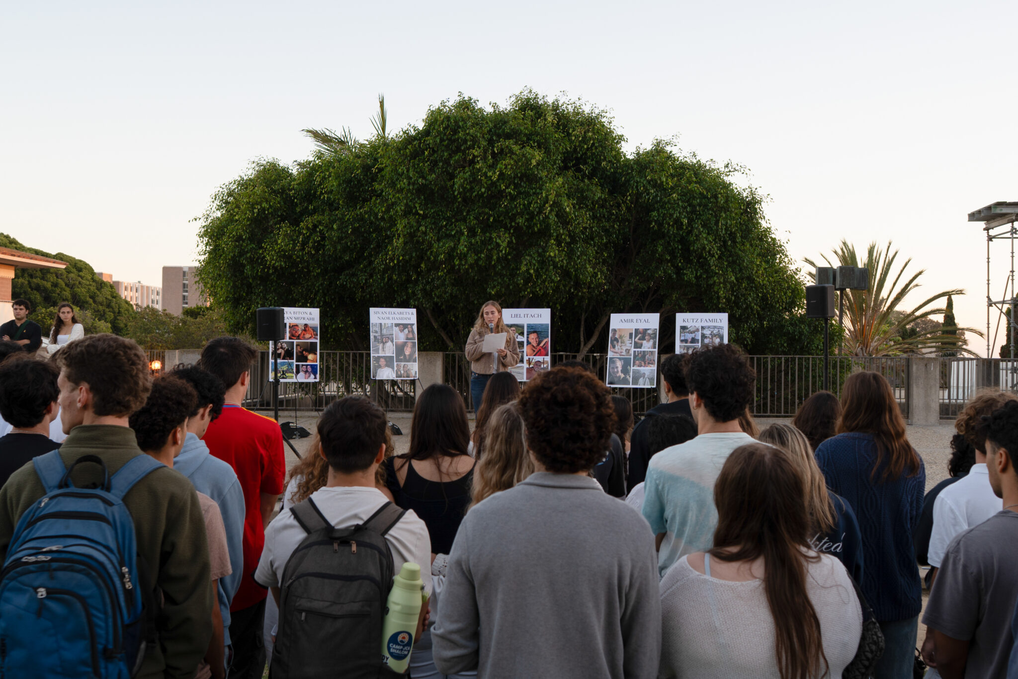 Next, organizers sang “Million Stars,” “Shaar Harachamim” and “Ani Ve’ata” and eulogized specific victims of the attacks, some of them friends and family of the speakers. Justin Shirazian, third-year biology major and president of Students Supporting Israel (SSI) at UCSB, shared the story of Maya Biton and Eliran Mizrahi, who were killed at the Nova Music Festival.