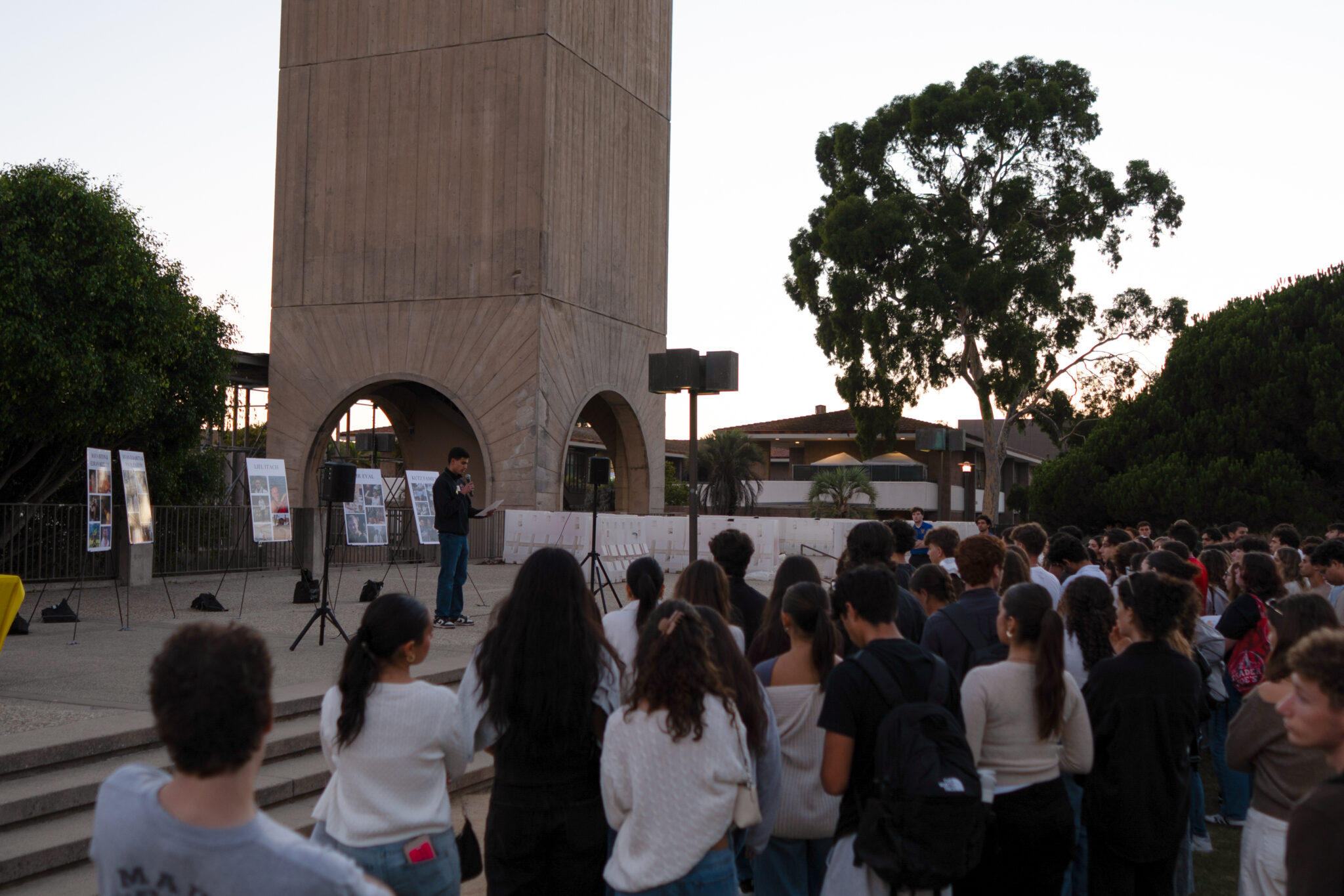 On the lawn below Storke Tower, around 80 people gathered for a vigil marking two years since the attack on Israel by the militant group Hamas on Oct. 7. Organized by Students Supporting Israel, Chabad at UC Santa Barbara, Mishelanu at UCSB and Santa Barbara Hillel, the vigil remembered those lost with eulogies, song and prayer.