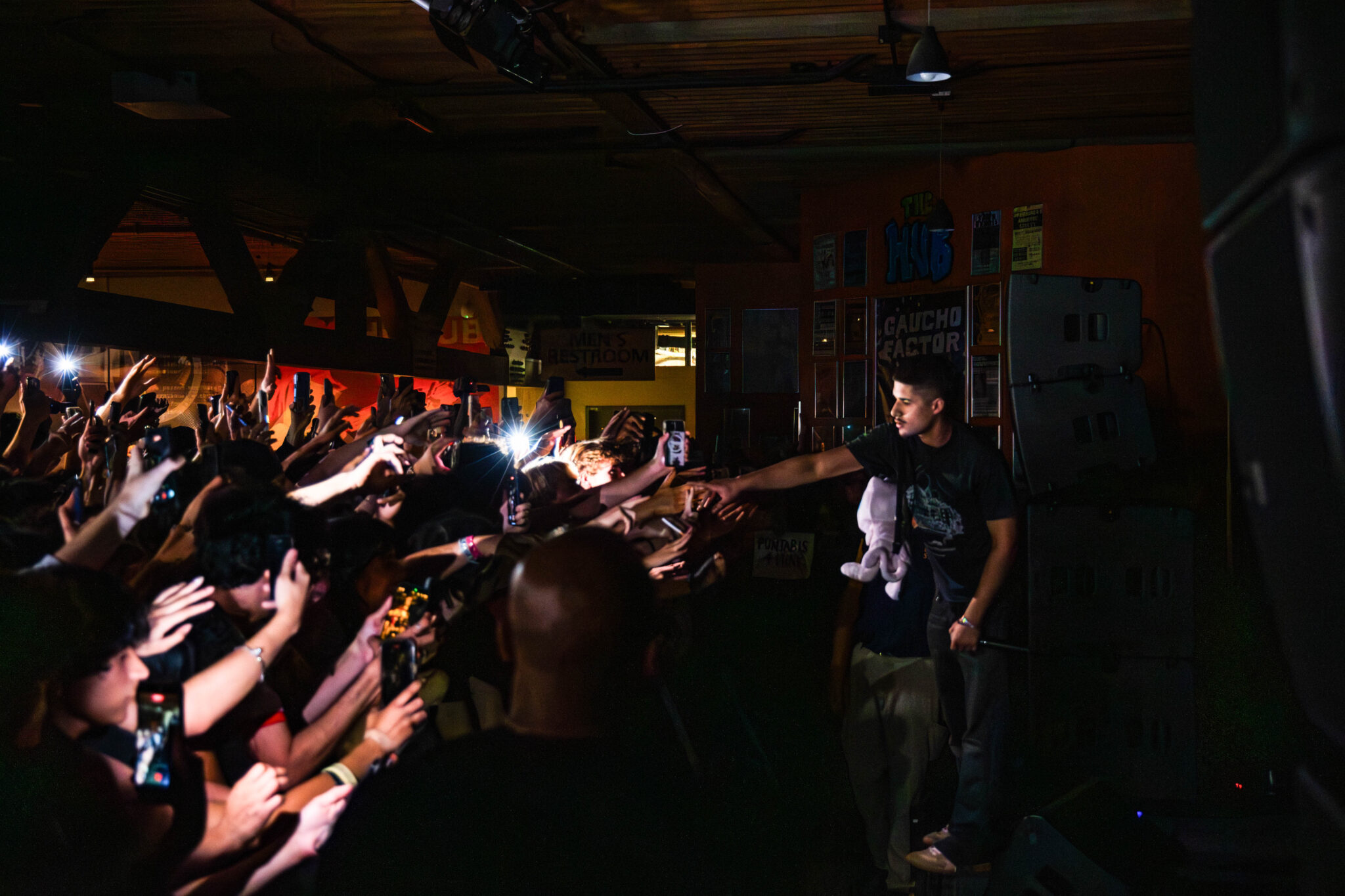 The show was completely sold out, with a line encroaching on the bike roundabout by Storke Tower. Several people attempted to buy tickets via the comments section of the Associated Students Program Board’s (ASPB) Instagram post and off of those in line for around $50. All tickets were sold in advance online at $12 for students or $15 for non-students, with none left to purchase at the door. Without a UCSB student attendance restriction, the Hub welcomed an influx of college-age visitors from nearby schools including UC Los Angeles and California Polytechnic State University, San Luis Obispo.