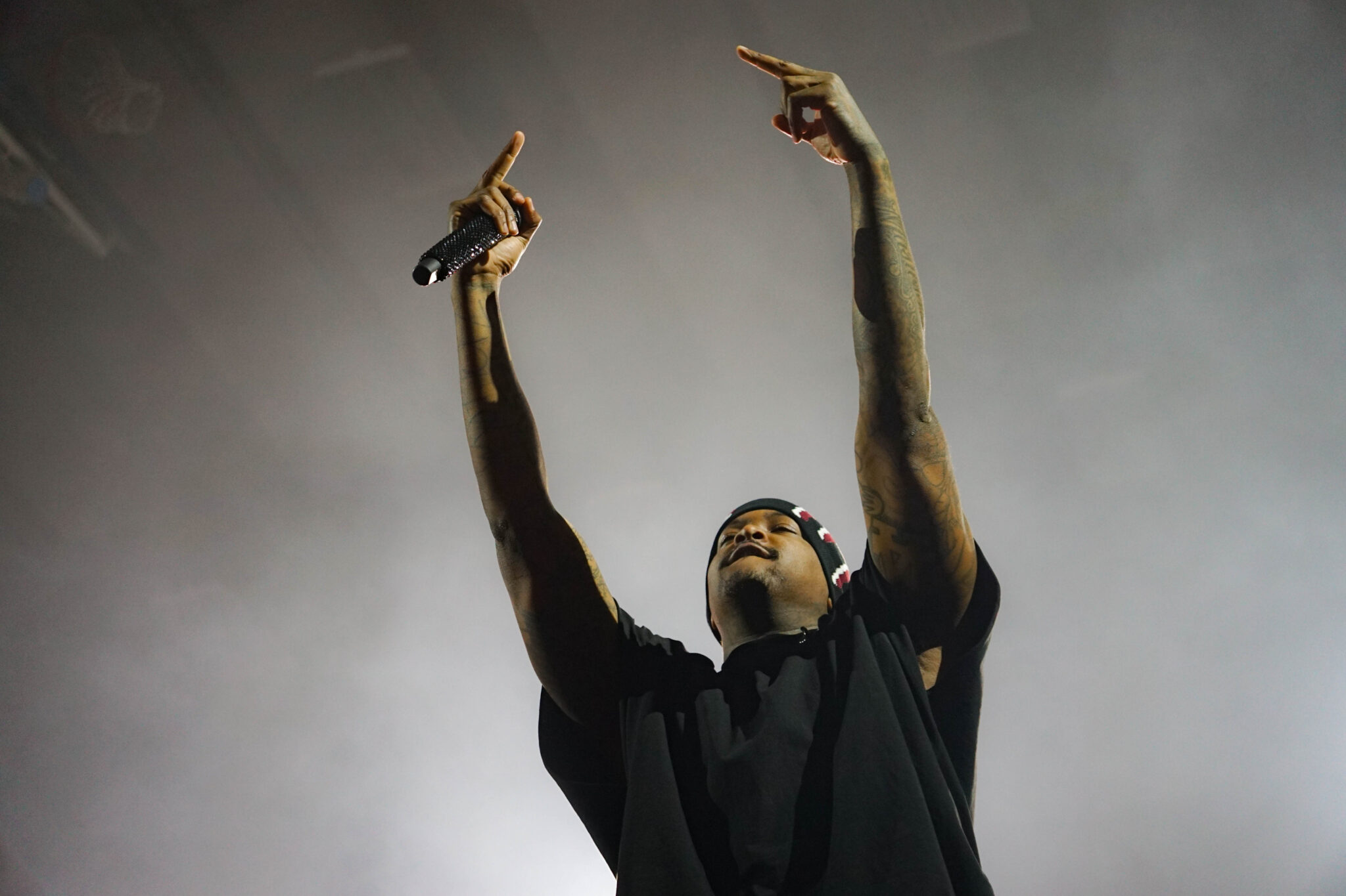 A deep red glow illuminated the crowd. After a brief warning for strobe lights and intense visual effects, the sudden beat drop of synth-heavy track “BPT” sent the crowd into a frenzy, screaming, “Westside! Westside! Westside!” as YG commanded the stage.