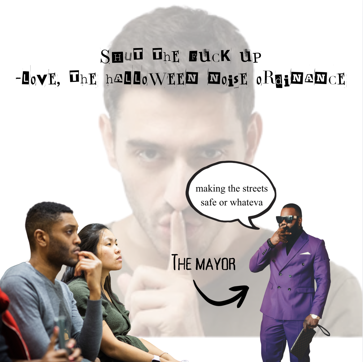 “In addition to the indefinite noise ordinance and the mandated curfew, we will be setting up security cameras on every block and introducing armed guards to patrol the streets at night, all to maintain public safety,” said Rowse.