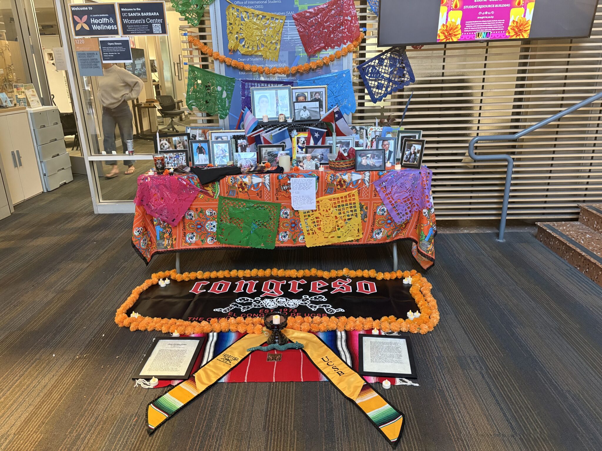 Ofrendas, or altars and offerings made to honor and remember deceased loved ones, were set up inside the Student Resource Building. Elijah Obando / Daily Nexus