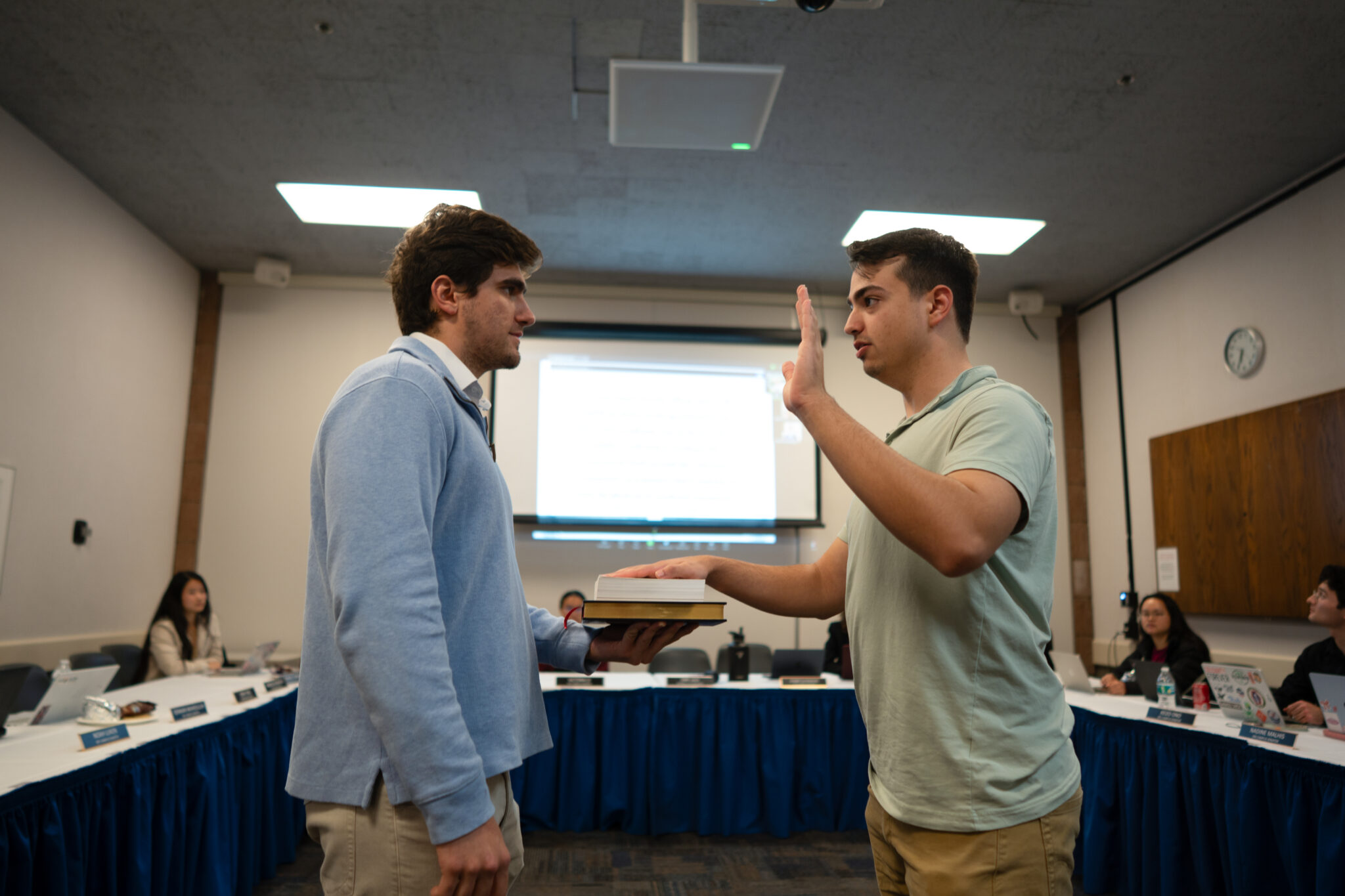 A.S. Internal Vice President (IVP) and fourth-year global studies and history major Enri Lala swore in first-year physics major Alec GeoSimonian as a new senator. Throughout winter quarter, Senate leadership will continue to fill the remaining Senate vacancies.