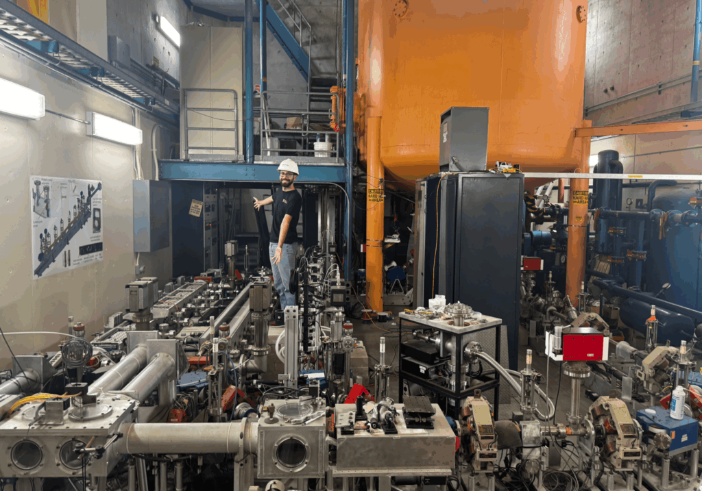 The physics department at UC Santa Barbara houses its own powerful particle accelerator that accelerates electrons to 99.4% of the speed of light. The roughly 10-meter tall accelerator is part of a free-electron laser (FEL) that produces powerful, terahertz pulses of light that the Sherwin Group uses to probe matter at its most fundamental level.