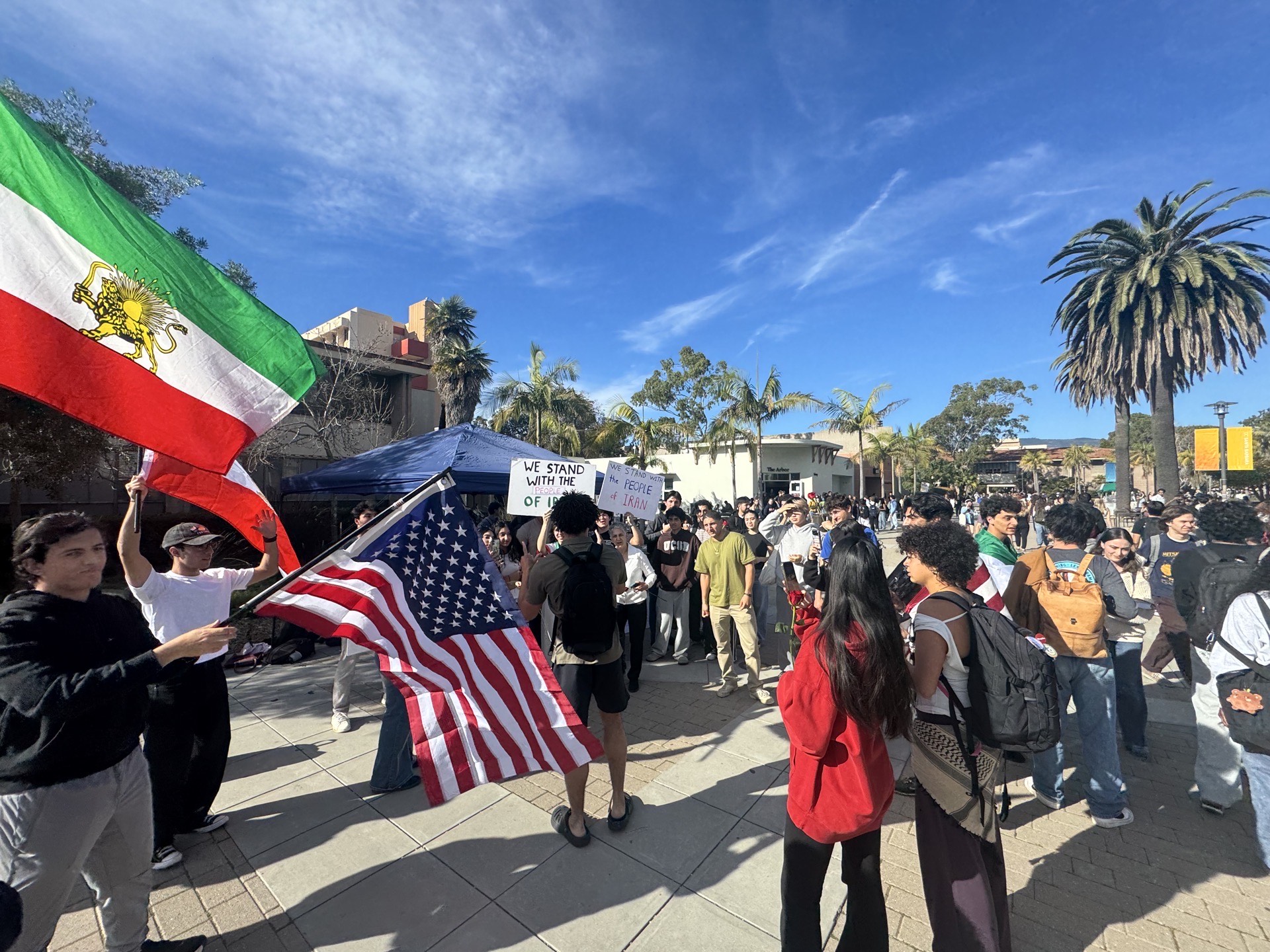 The UC Santa Barbara Persian Student Group held a rally for Iran at the Arbor on Jan. 14, and continued demonstrations throughout the week. Around 60 students and community members attended, calling for the fall of the Islamic Republic of Iran, which has been in power for nearly 47 years.