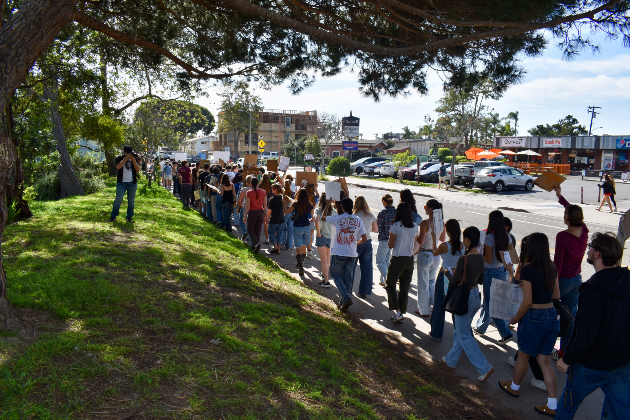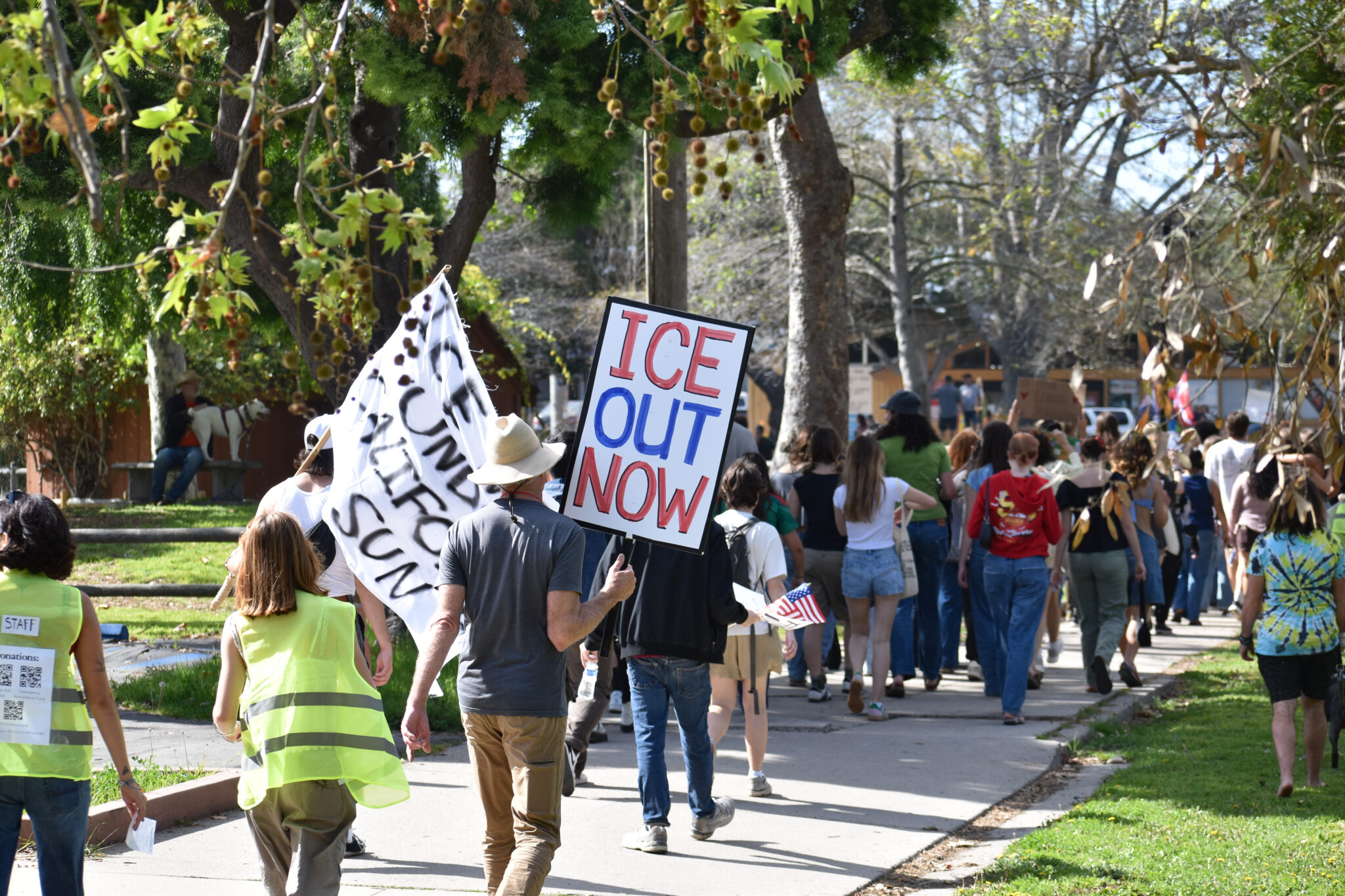 I.V. community members marched through Anisq’Oyo’ Park protesting Immigration and Customs enforcement on Feb. 7. Sara Stevens / Daily Nexus