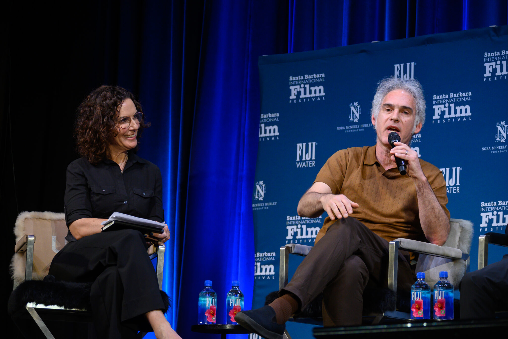 Moderator Nicole Sperling listening to Ronald Bronstein talk about his work on “Marty Supreme.” (Sherine John / Daily Nexus)
