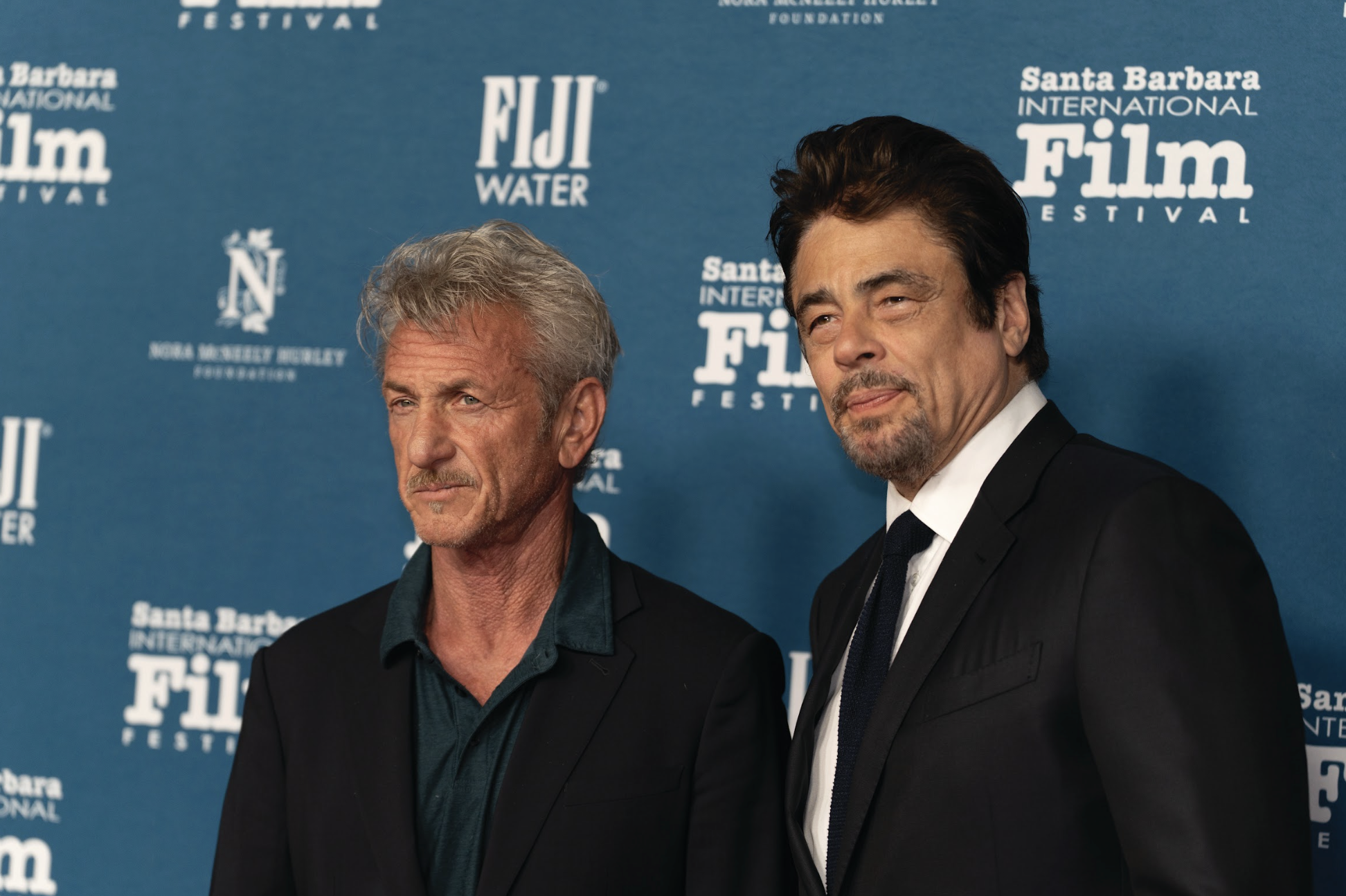 Penn and del Toro posing together on the SBIFF red carpet. (Shengyu Zhang / Daily Nexus)