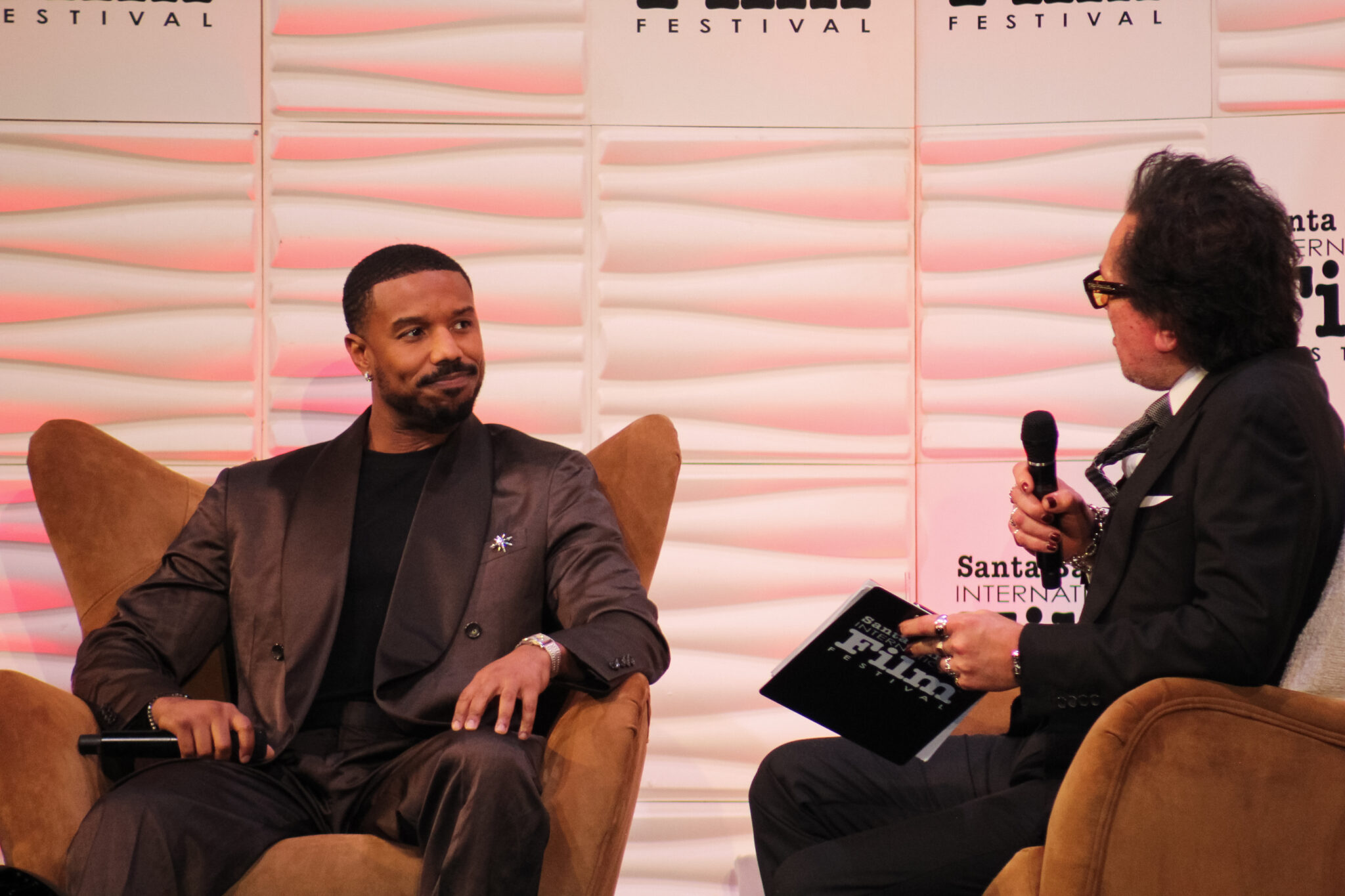 Jordan talking to SBIFF Executive Director Roger Durling. (Alexa Lopez / Daily Nexus)