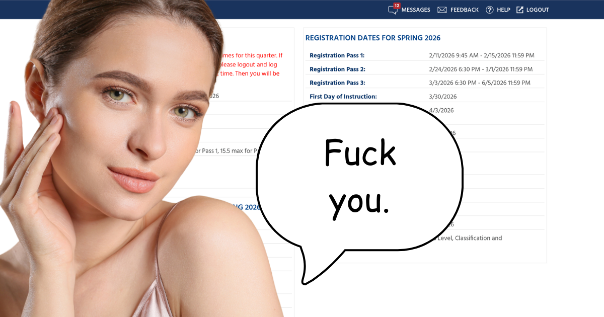 Despite the fact that priority registration is only applicable during the first pass time, UCSB students are expected to be faced with reminders of their lack of good pass times until two weeks into Spring quarter. For students more sensitive to reminders of pass times, the Daily Nexus recommends completely avoiding topics such as schedules, plans for next quarter and any mention of classwork.