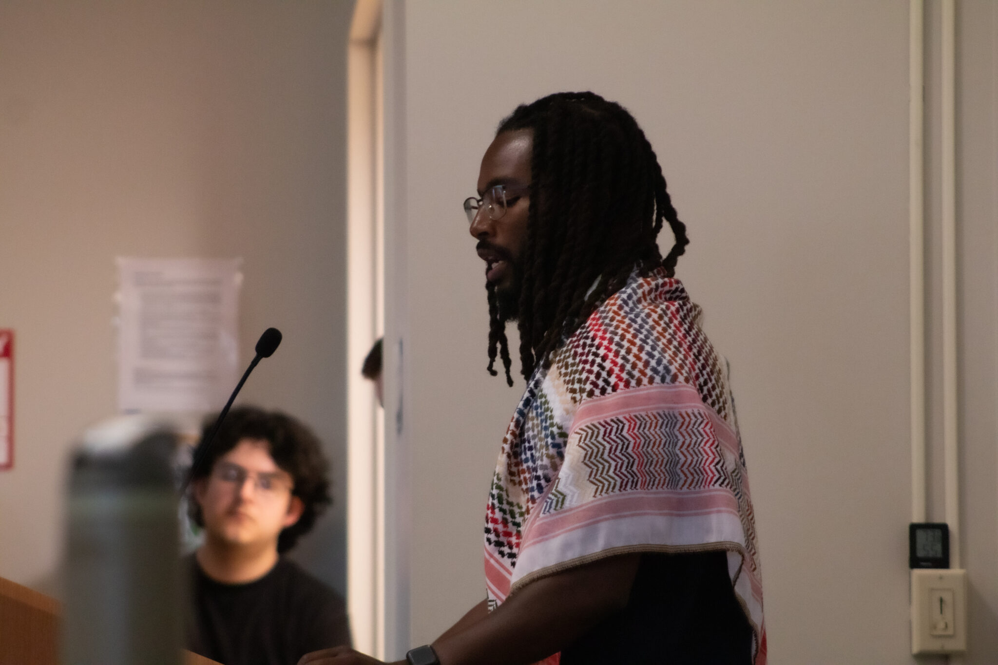 Carlson spoke first and discussed two concrete actions attendees could take to protest the University’s support of “the logic and enactment of genocide” by Israel. A September 2025 United Nations Commission of Inquiry determined Israel’s actions in Gaza constitute a genocide.