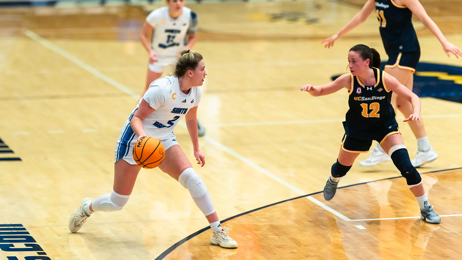 The Gauchos started off strong but the Tritons quickly hit back. UCSB sophomore forward Olivia Bradley and junior forward Zoe Borter began the scoring for the Gauchos with a strong layup and top-of-the-key 3, respectively, to give the Gauchos an early 5-0 lead. Borter had a fantastic performance, tallying 21 points on 80% from the field and a stunning 83% from the 3.