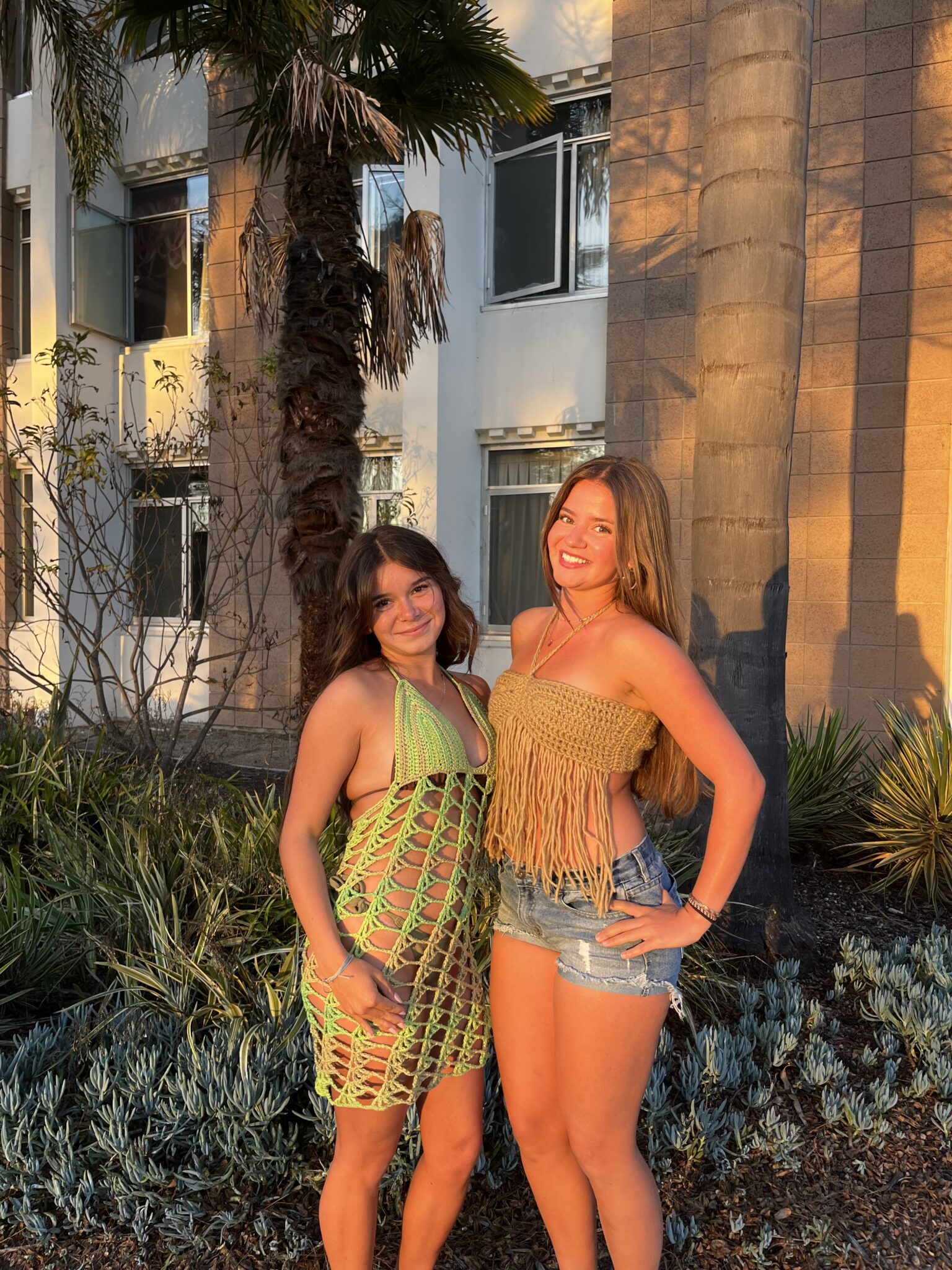 First-year psychological & brain sciences major Olivia Perry sells crochet bikini tops, booty shorts and ponchos out of her dorm. Perry explained her business model as “a lot of clothing for daygers or the beach, lots of small and revealing things for mainly an audience who’s girls”. Perry said starting her business gave her a way to make money while doing her hobby.