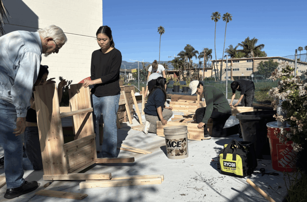 Students build garden beds for local senior home