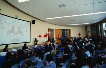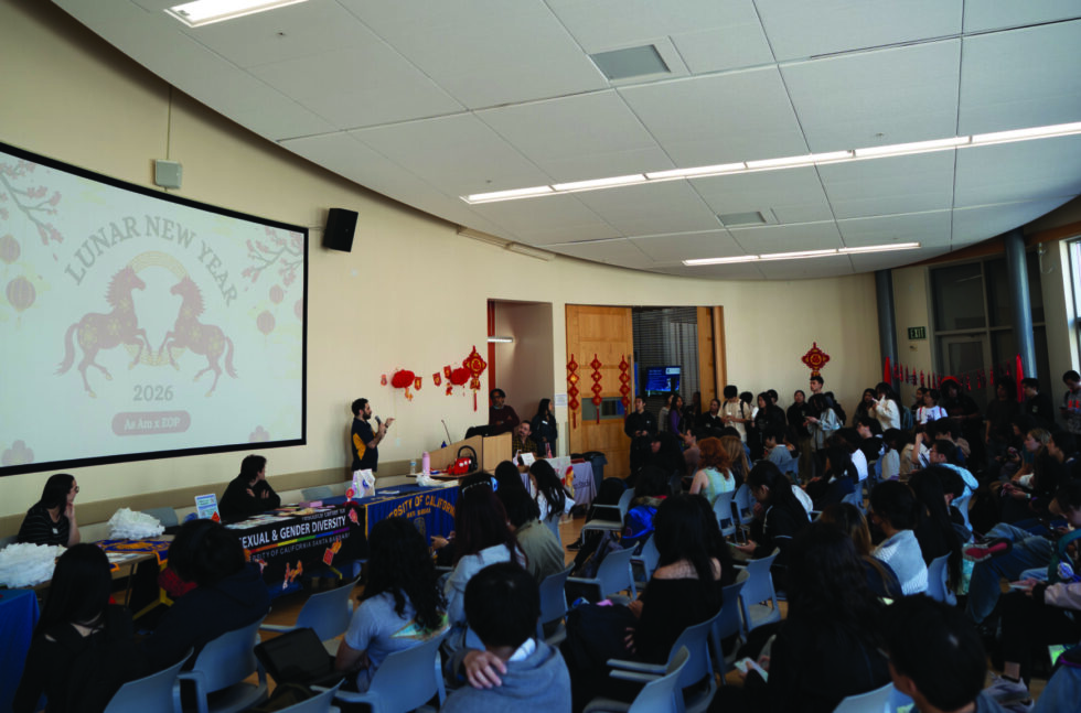 Students gathered outside the SRB for a Lunar New Year celebration hosted by the EOP.