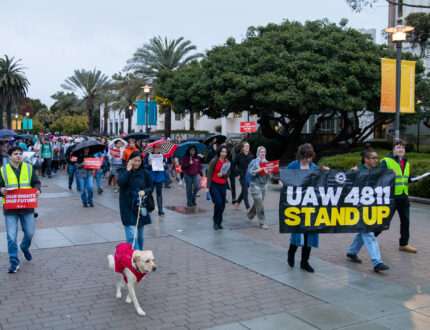 Workers across the UC rallied on Nov. 20 ahead of upcoming contract negotiations. At UC Santa Barbara, roughly 60 workers rallied at the Arbor walkway.