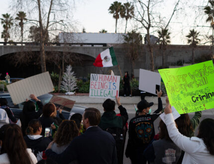 Roughly 300 people gathered at Milpas Street to protest against ICE operations and express solidarity with the undocumented community of Santa Barbara.