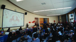 Students gathered outside the SRB for a Lunar New Year celebration hosted by the EOP.