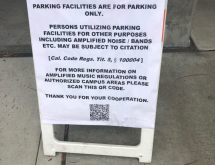 The university posted a sign at Lot 22 stating that parking facilities should only be used for parking — and not for making music.