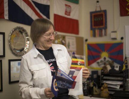 With a collection of 3,000 flags, leading North American flag expert Annie Platoff keeps her award-winning wisdom tucked away in the UC Santa Barbara Library.