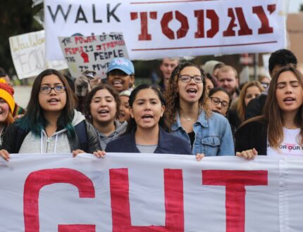 Members of the UCSB Student Activist Network called on students to walk out of class and assemble in front of Storke Tower Monday, passing out signs saying, “Hikes are for trails NOT tuition” and “You are not a-loan” as students assembled.