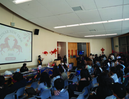 Students gathered outside the SRB for a Lunar New Year celebration hosted by the EOP.